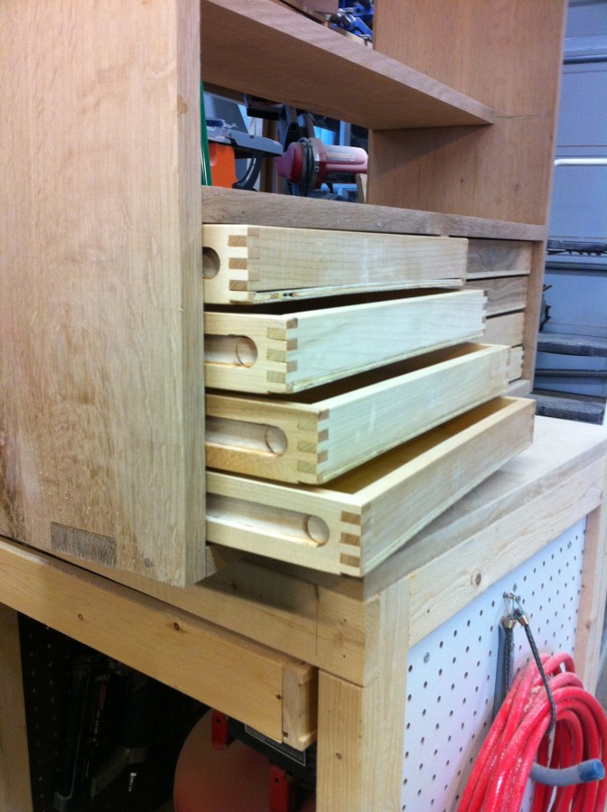 Side view of the finger-jointed drawers.